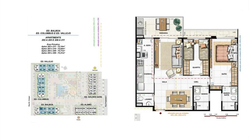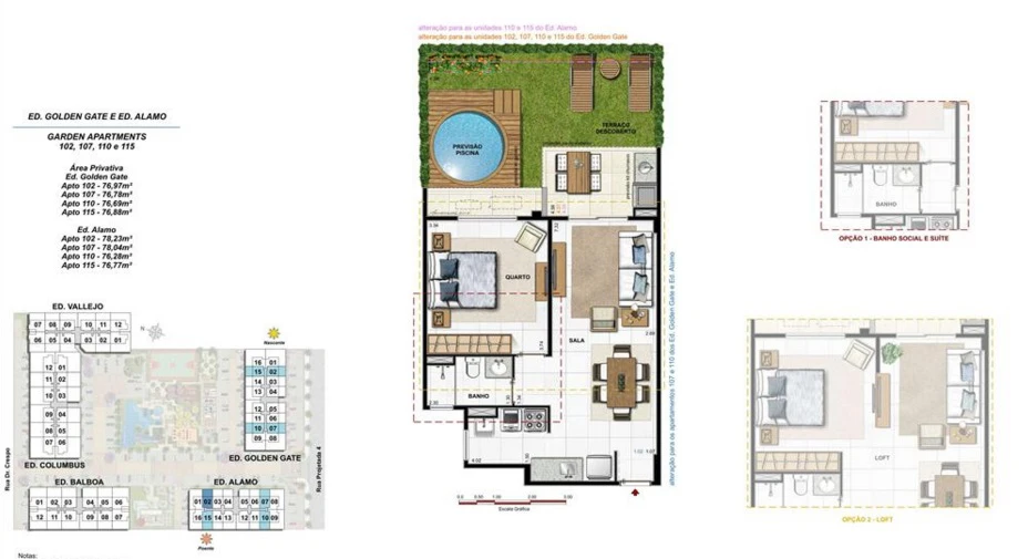 Apartamentos de 2 Quartos com 75m² / Apartamento de 1 Quarto Garden – de 76m² até 144m²;