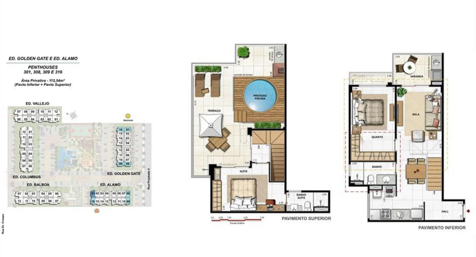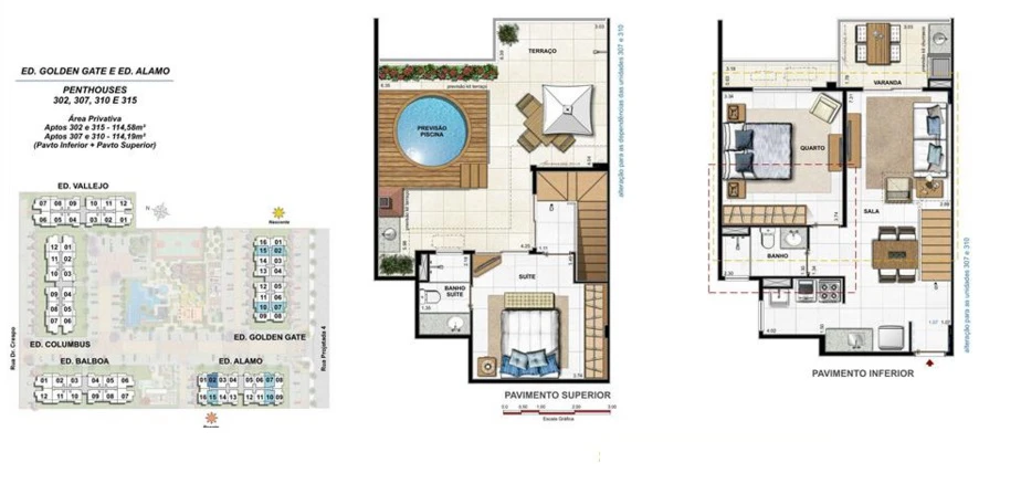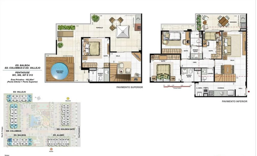 Coberturas de 2 Quartos com 112 até 117m² / Coberturas de 4 Quartos, com 163m².